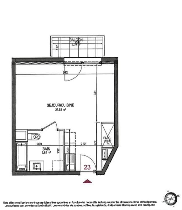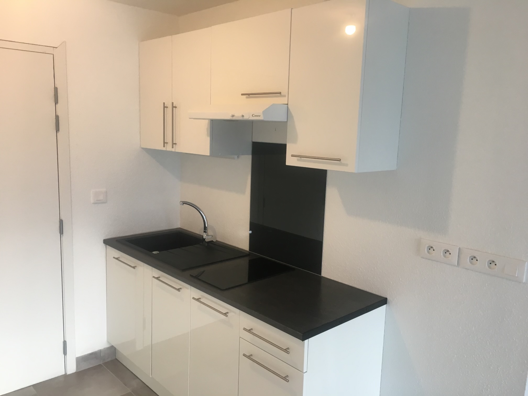 – kitchenette équipée ouverte sur la pièce de vie pour un total de 27m2 et donnant sur le balcon de 3m2.