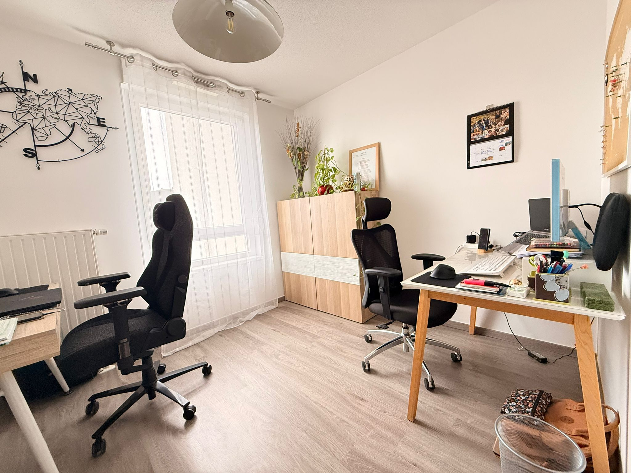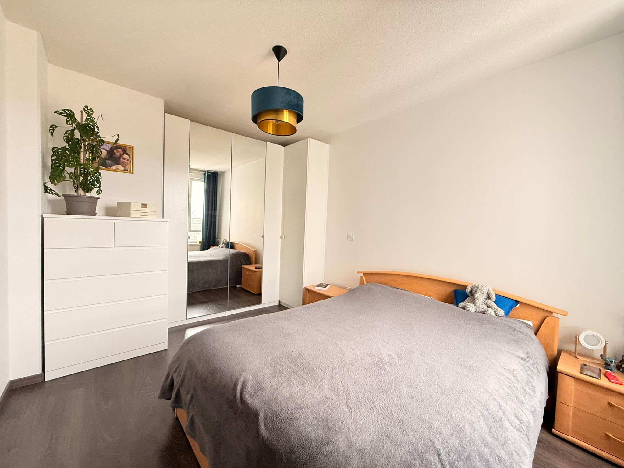 Deux chambres spacieuses de 12 m2 et 10 m2, dont une avec placards sur mesure intégrés,