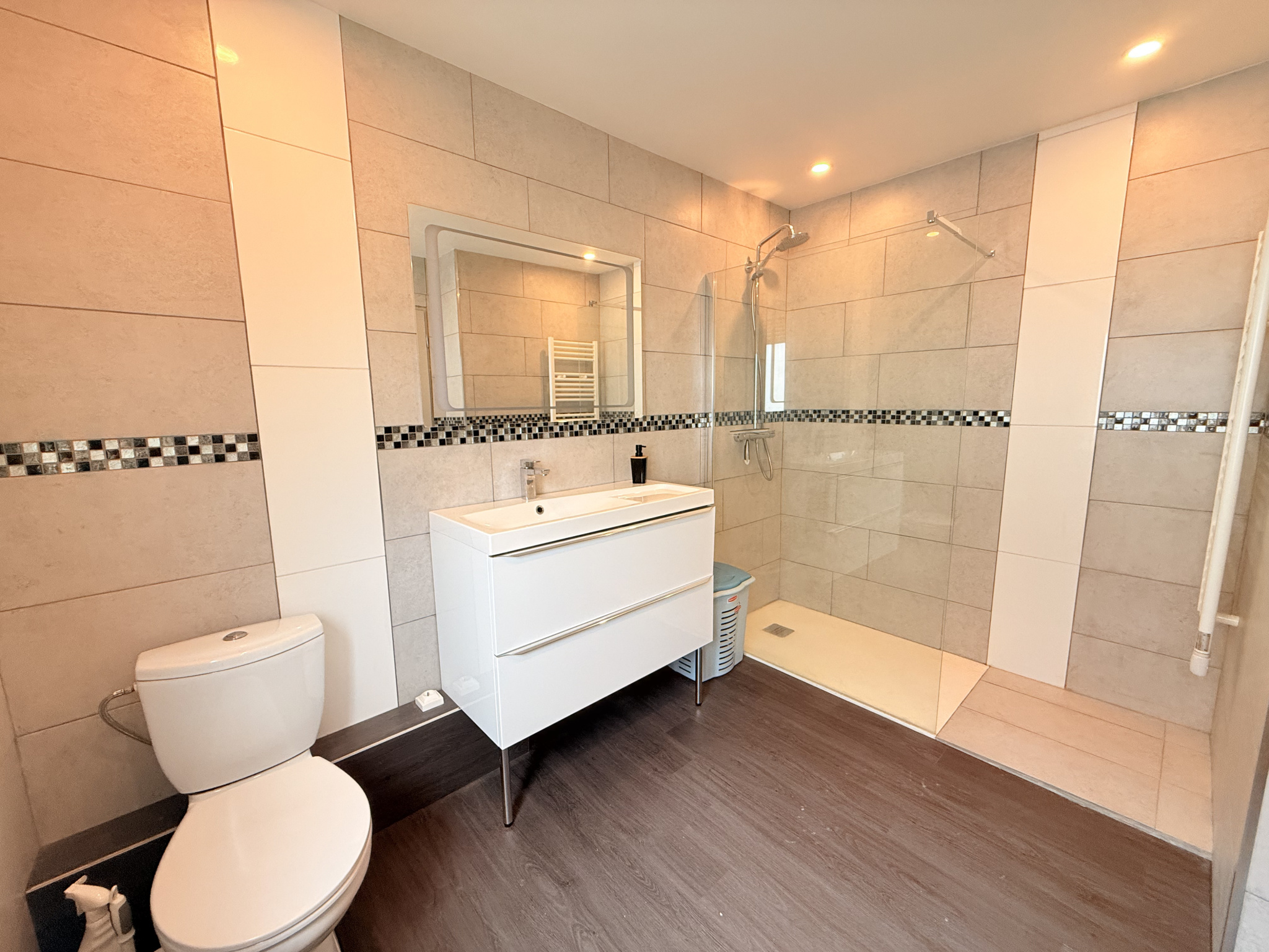 – une salle de bain spacieuse avec WC