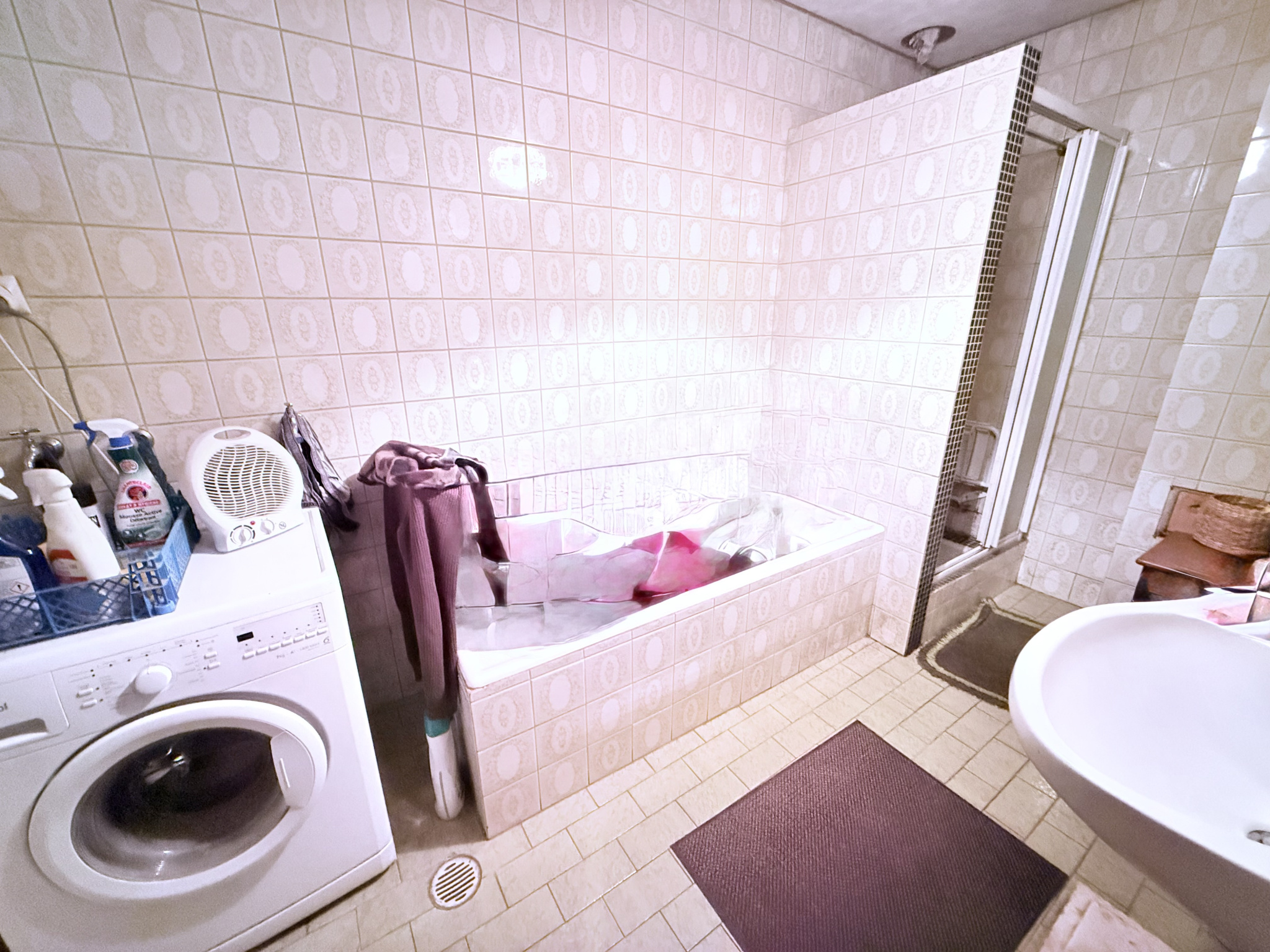 – 1 salle de bains avec douche, baignoire.