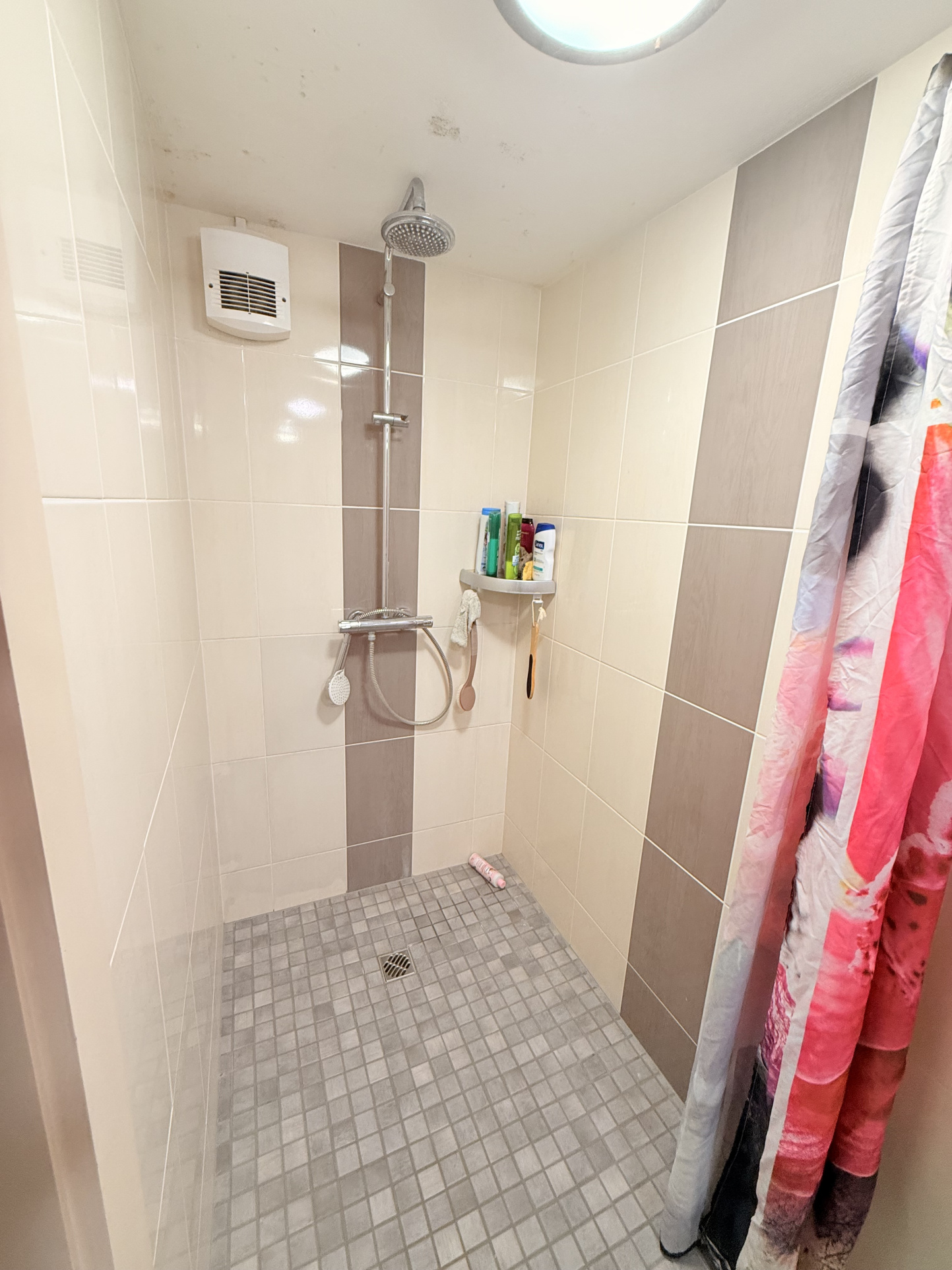 – 1 salle d’eau avec douche , wc ,meuble vasque , fenêtre .