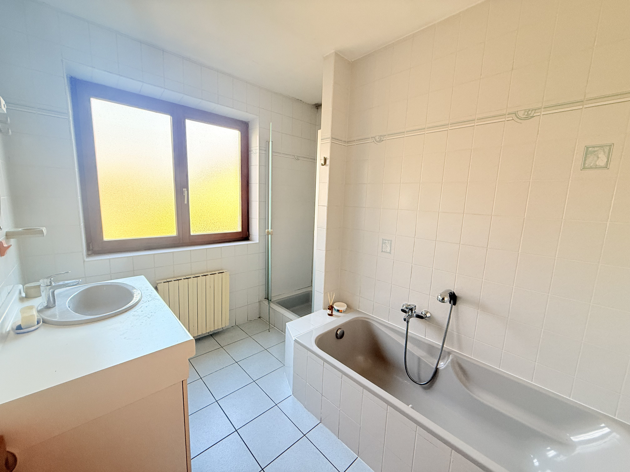 Salle de bains avec baignoire, douche et fenêtre de 7m2.