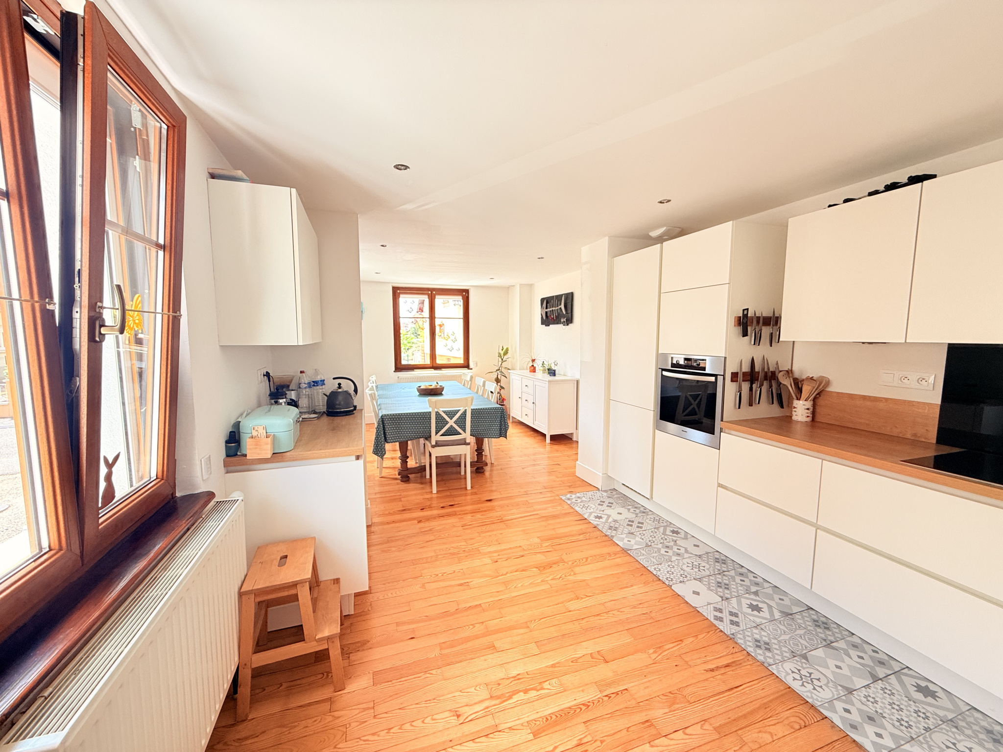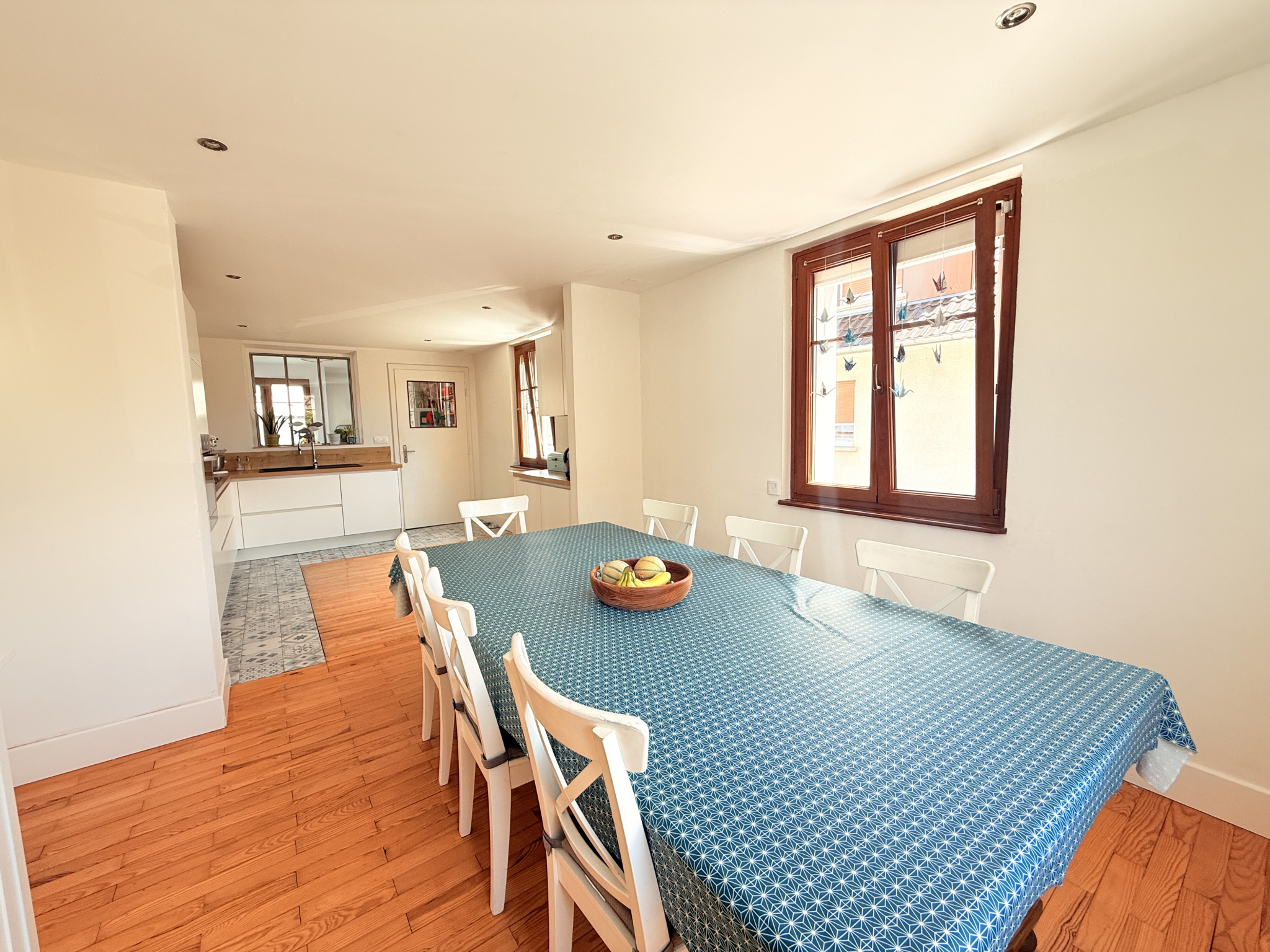 Cuisine spacieuse de 25,5 m2 ouverte sur la salle à manger, idéale pour les repas conviviaux.