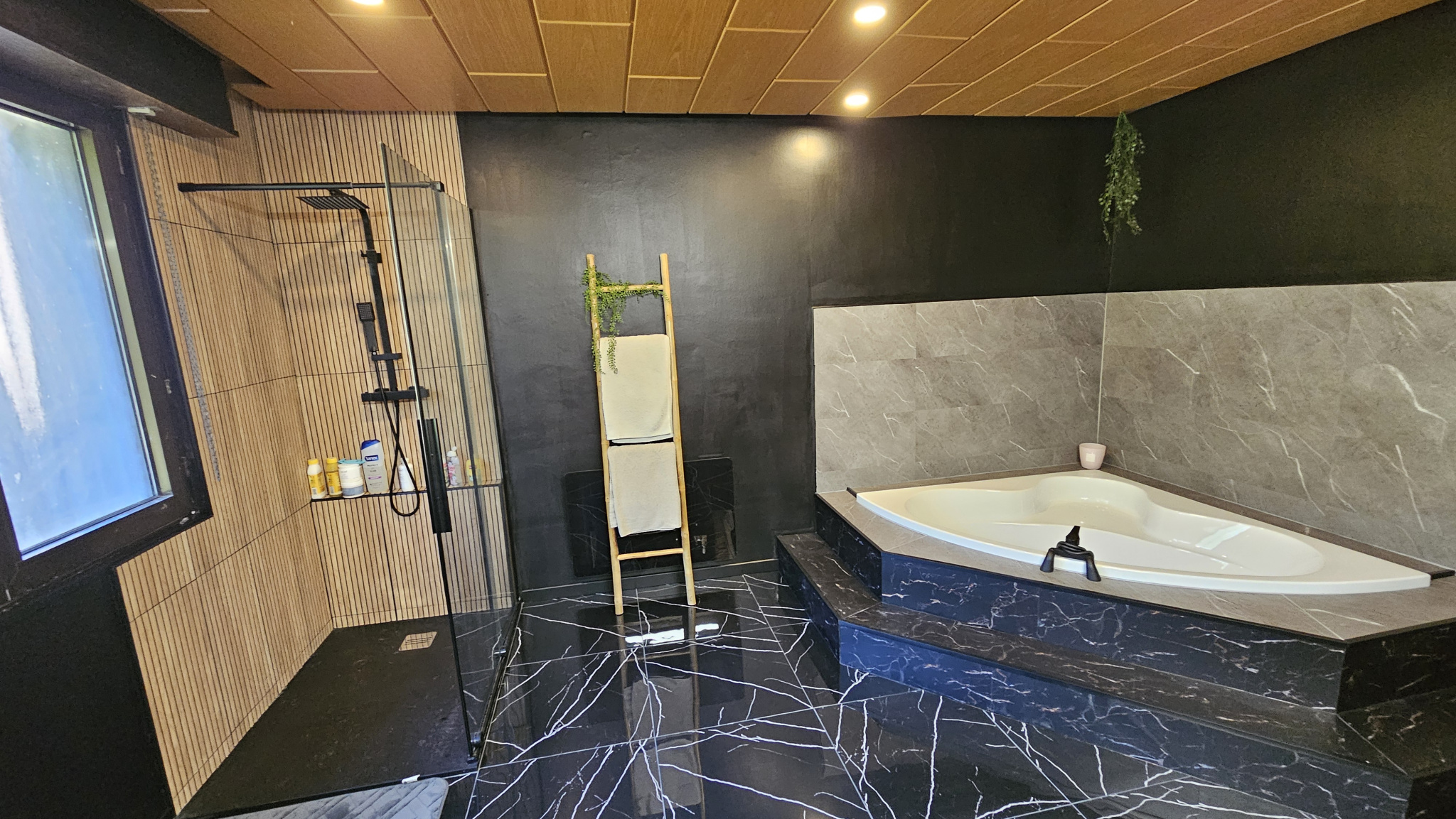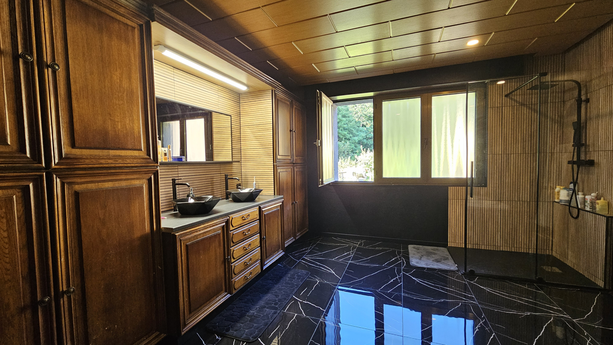 – une salle de bain avec une double vasque, une douche italienne et une baignoire