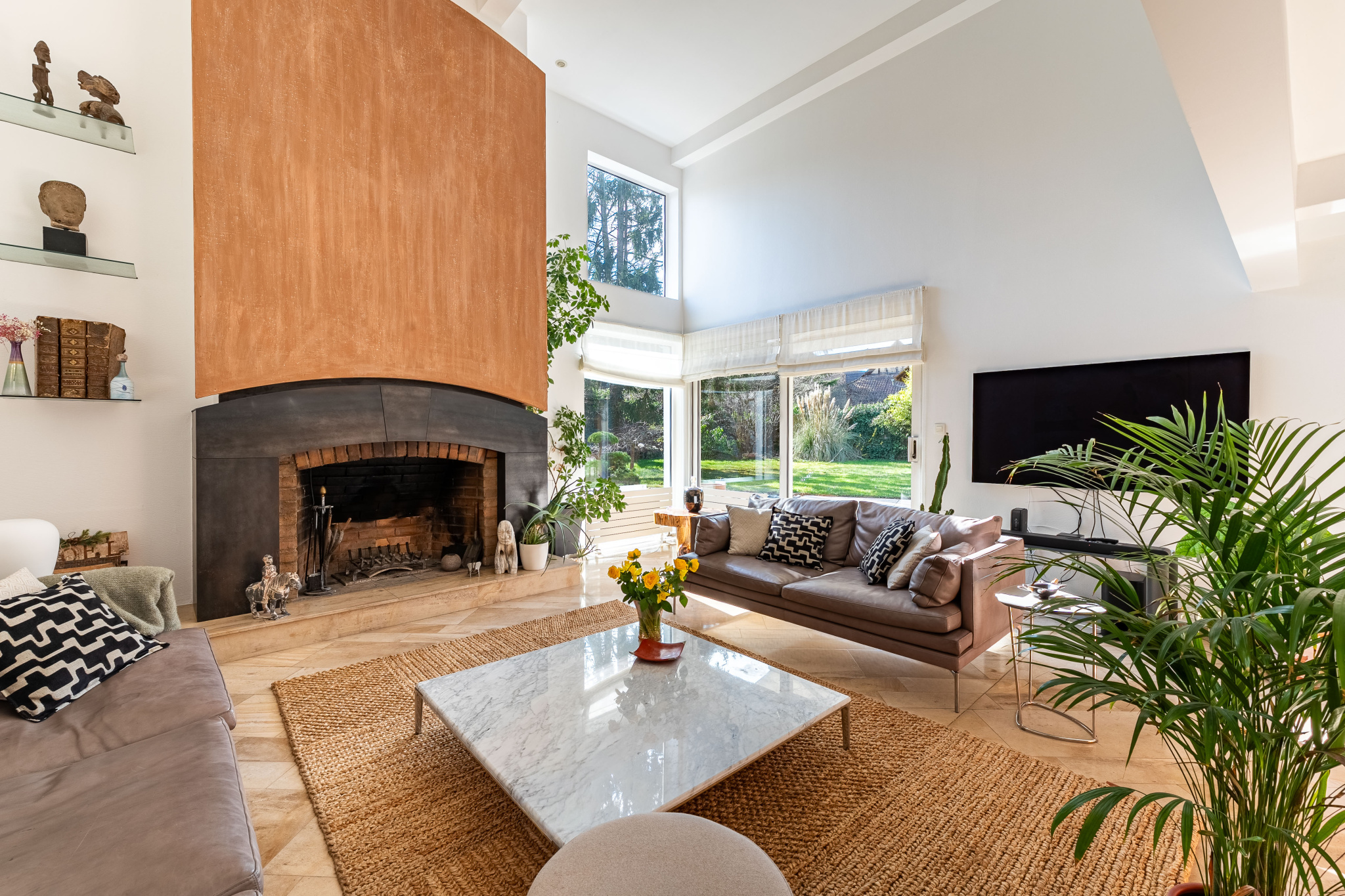 – Salon-séjour lumineux de 39 m2 avec cheminée et belle hauteur sous plafond, grandes baies vitrées donnant sur la terrasse et le jardin,