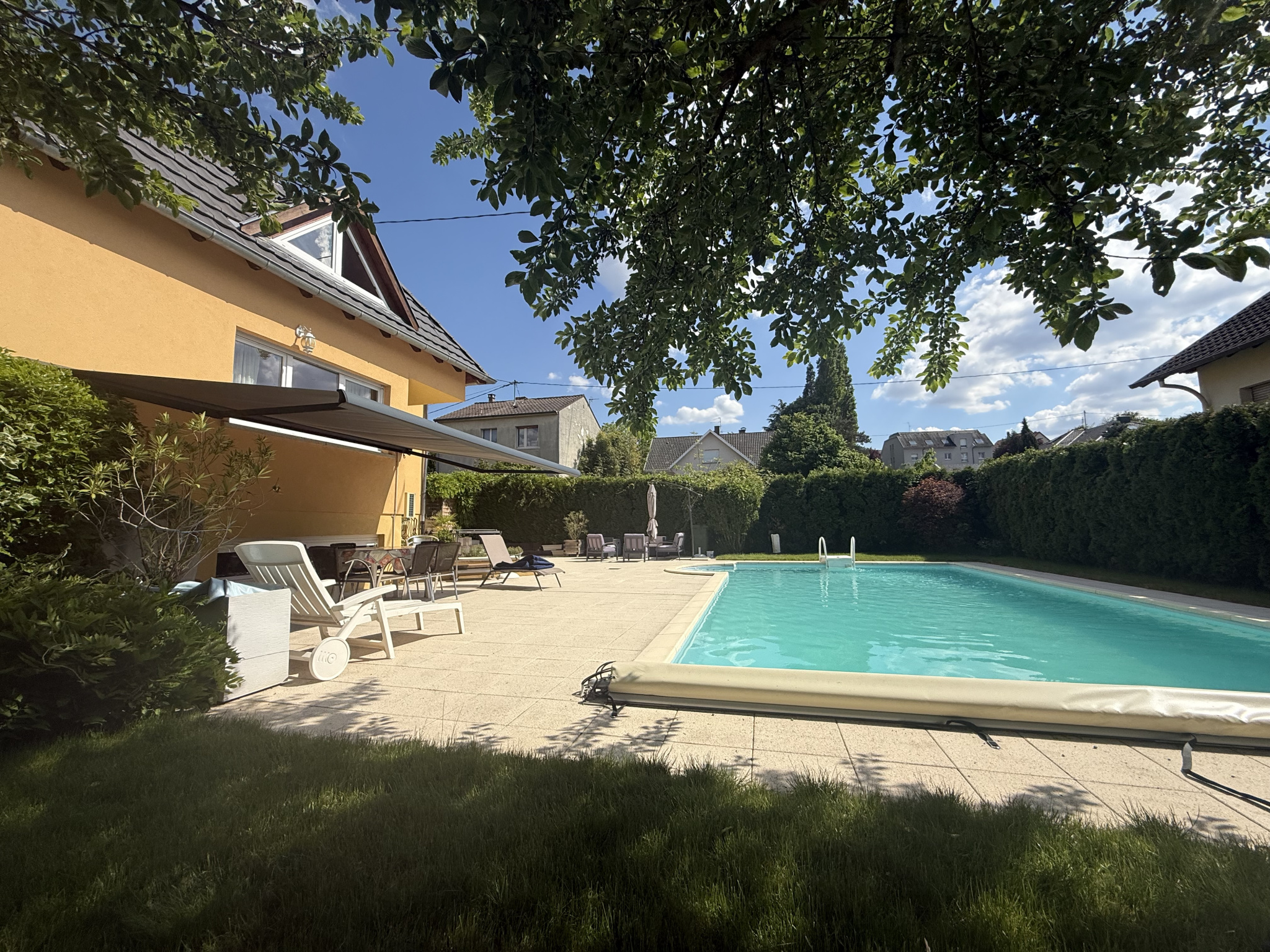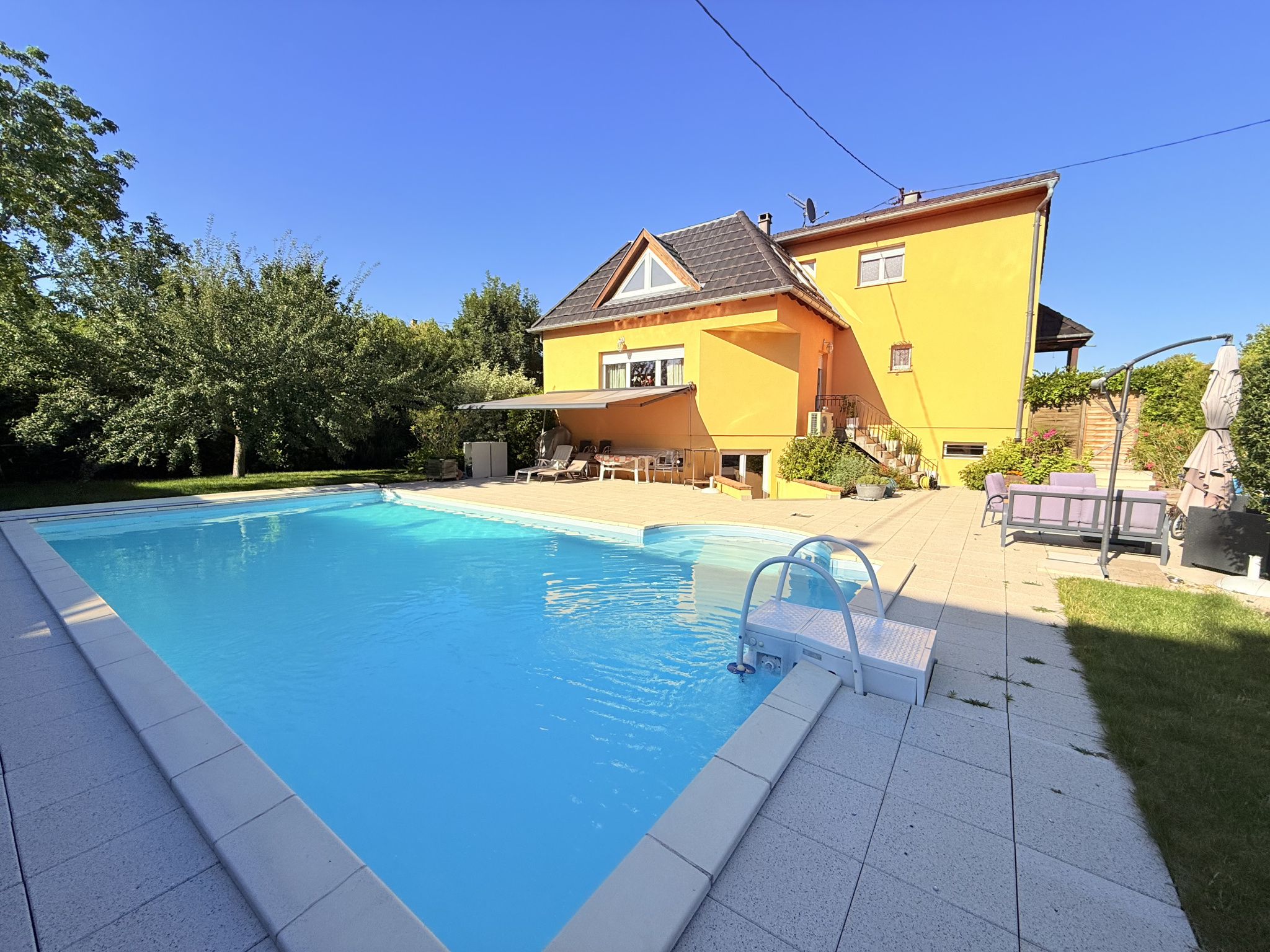 Pfulgrisheim à saisir , proche de Lampertheim dans un cadre pavillonnaire superbe villa 7 pièces de 206m2 habitables , piscine , sous-sol complet d’environ 110m2 , posée sur un terrain de 7,46ares.