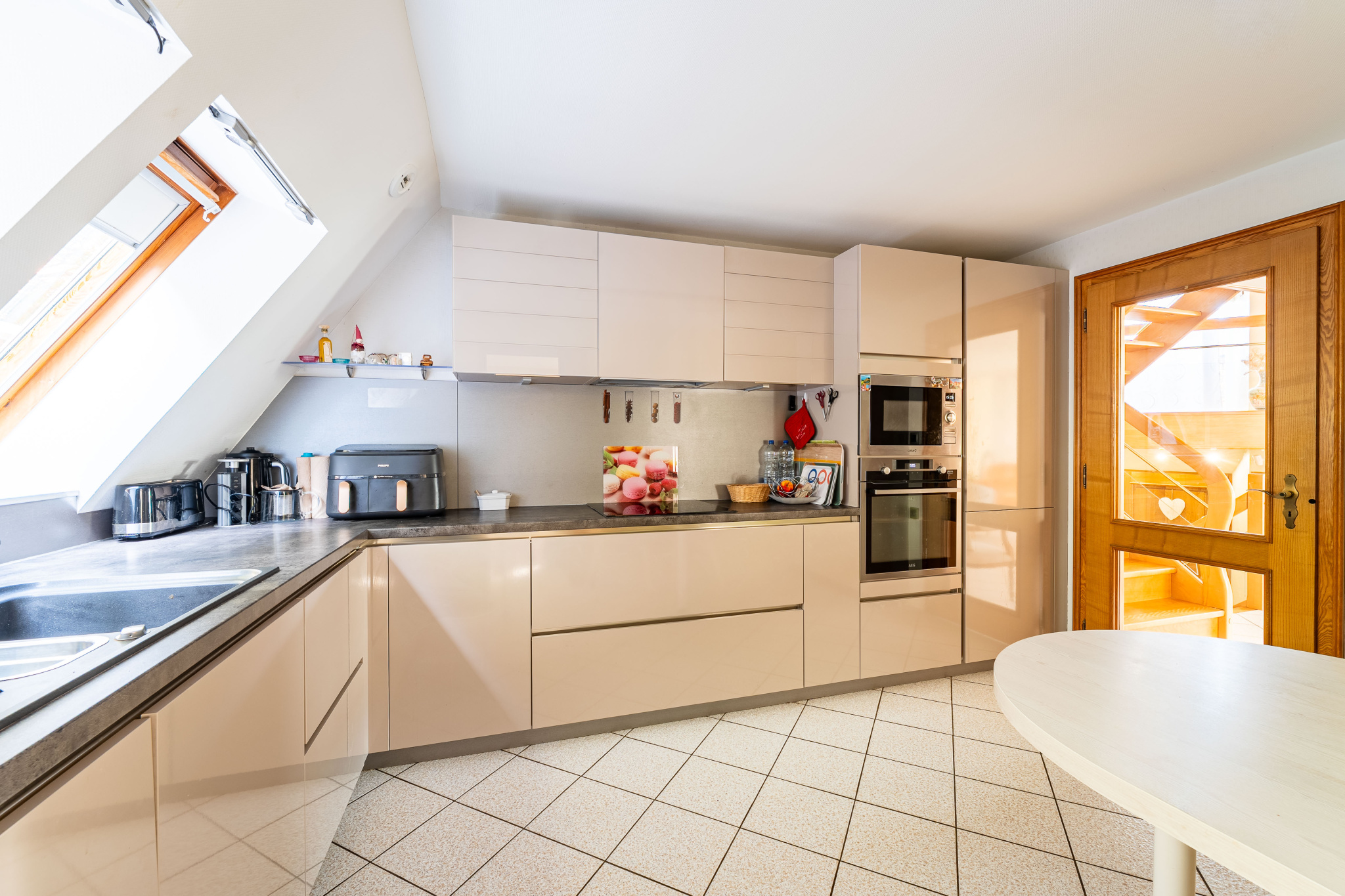 Une cuisine équipée séparée, fonctionnelle et conviviale.